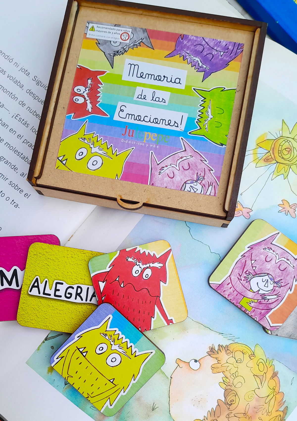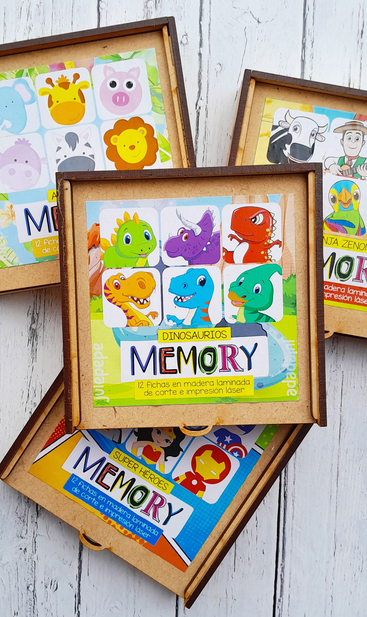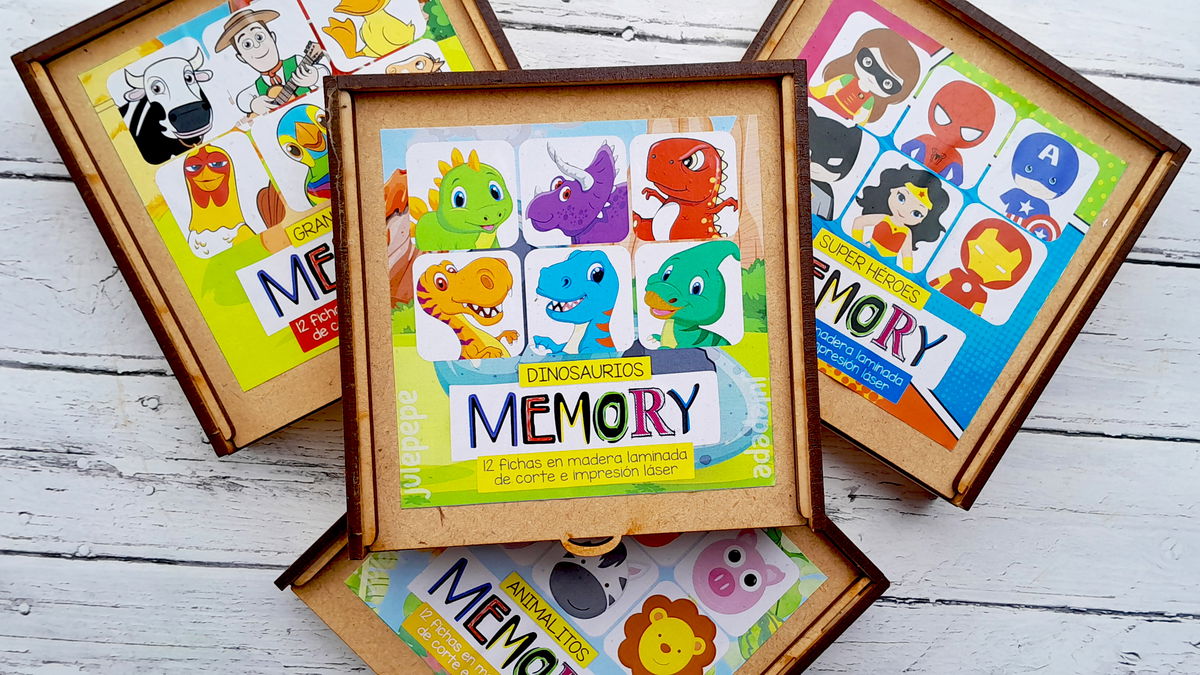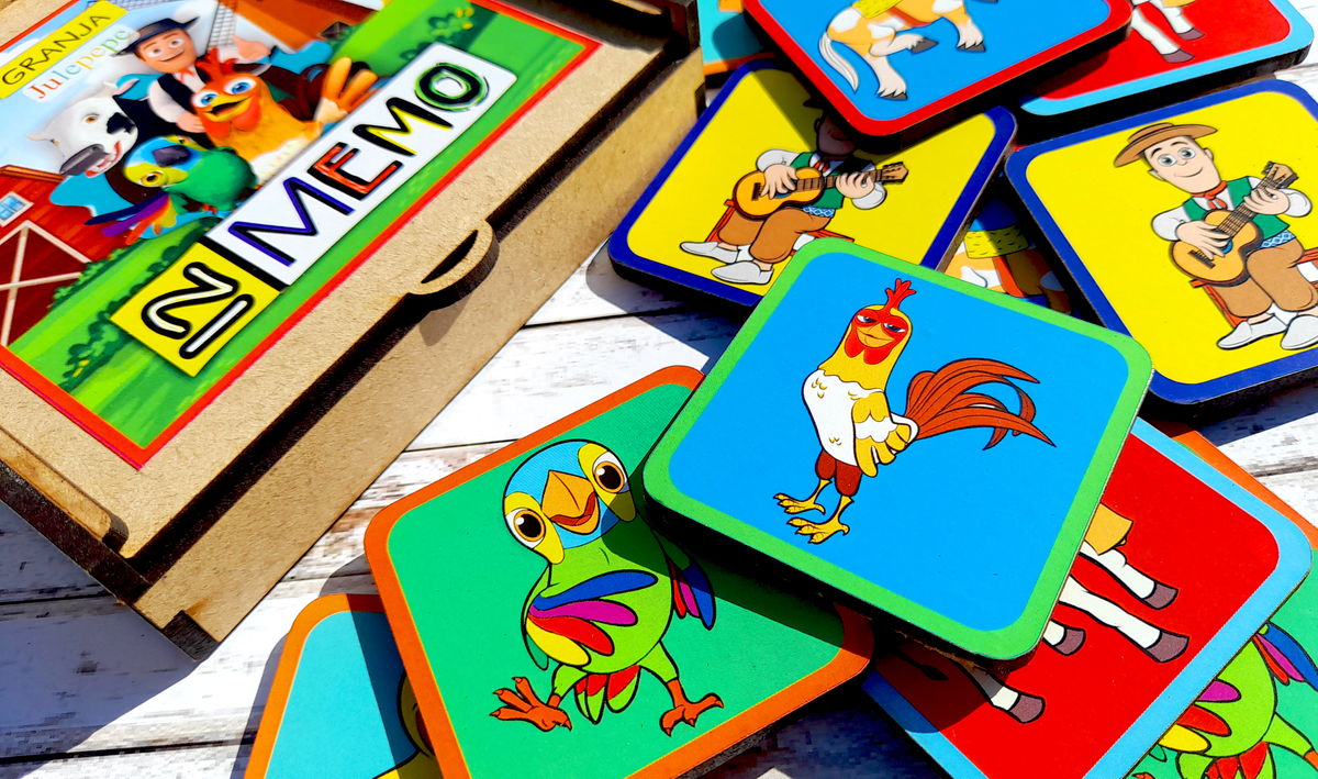 JUEGO DE MEMORIA 12 FICHAS - En caja de madera.