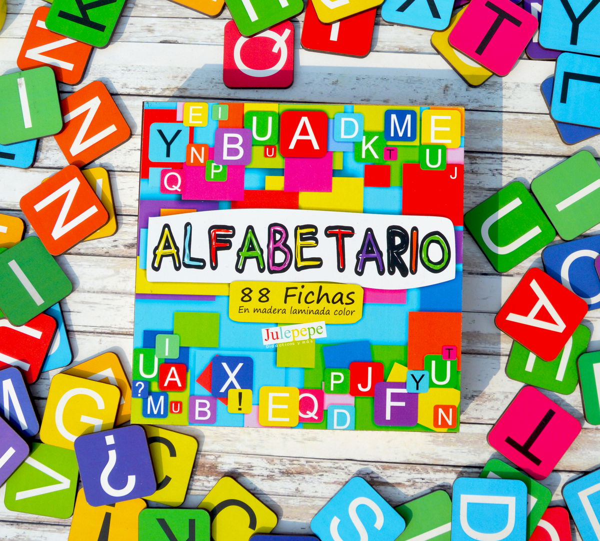 Contiene 88 fichas en madera laminada color!