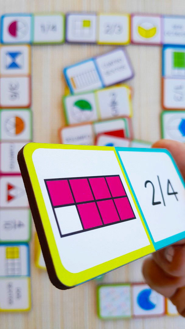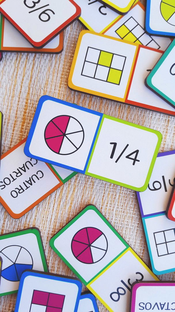 SUPER DOMINÓ MATEMÁTICAS, FRACCIONES Y SÍLABAS