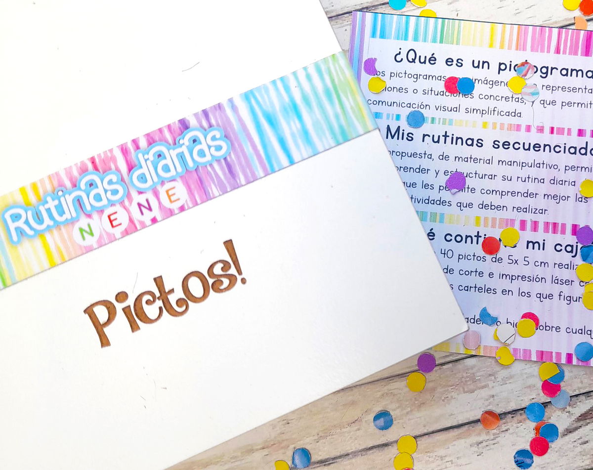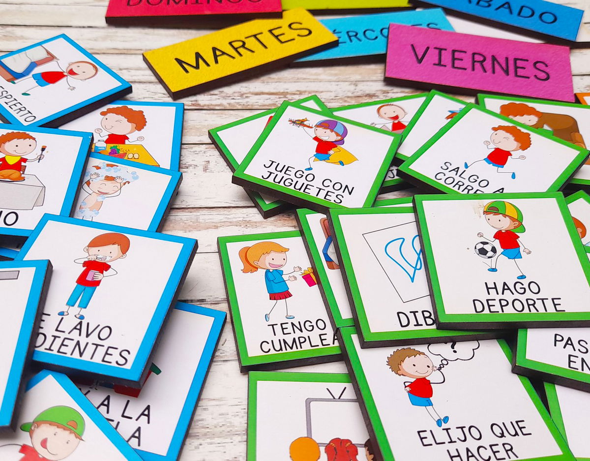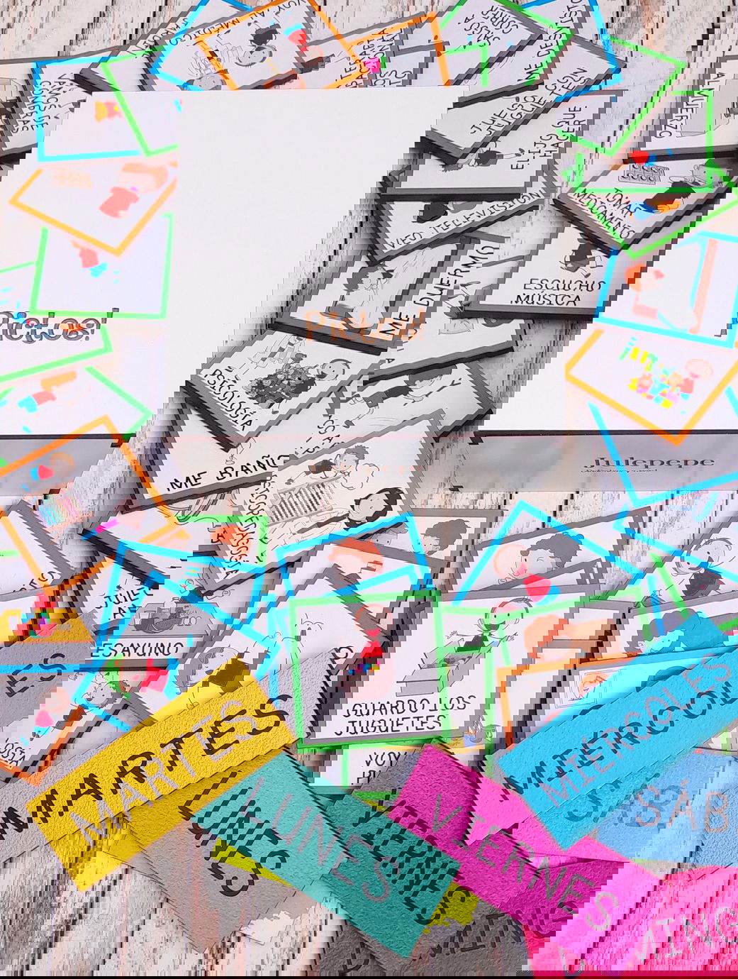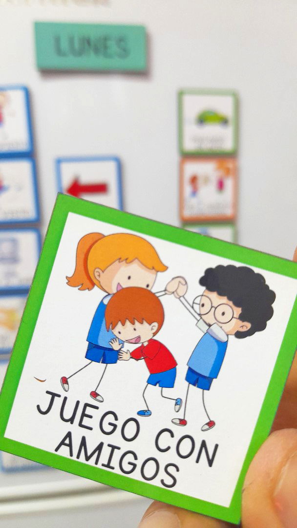 CONTENIDO: 40 FICHAS PICTOS DE 5x5 cm + 7 FICHAS CON LOS DÍAS DE LA SEMANA.